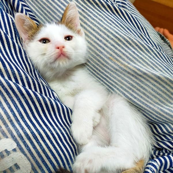 | 特徴(性格など) | お目目はタレ目で小粒ですがキラキラ可愛い瞳の持ち主です。彼女の魅力、可愛さを写真では上手く伝えられないのが残念です。写真より実物可愛いですよ。 人が大好き遊ぶの大好き電池が切れるまでずっと動いて遊んでいます。疲れると膝の上や自分のベットでコテンとします。一つ一つの行動が可愛らしく直に彼女の可愛らしさを感じられると思います。兄妹猫のそうちゃんとはとても仲良しなので二匹一緒のご縁があれば嬉しいです。 |