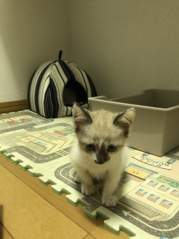 | 特徴(性格など) | 白っぽい雰囲気です。性格はまだ人に警戒心があり、抱き抱えていても途中で逃げて部屋の隅に。まだ日数が経っていないのもあると思います。 しっぽがまっすぐでなくだいぶくねくね曲がっています。 写真が上手く撮れませんが、後で更新して何枚か載せます。 |