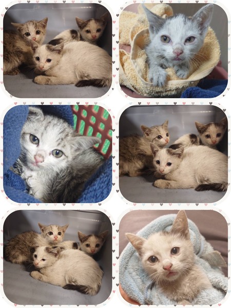 | 特徴(性格など) | シロクロちゃん達が女の子 シマシマちゃんが男の子 シロクロちゃん達はパズルのように柄が右側にある子と左側ににある子たちで可愛い柄です。 お鼻ピンクでまんまるおめめとまんまるお顔の可愛い子猫ちゃんたちです。 保護したばかりでまだ緊張していますが、少しずつなれてきてくれています。 人馴れしてからのお渡しまたは、気長に付き合っていただける方からのお申し込みお待ちしております。 |