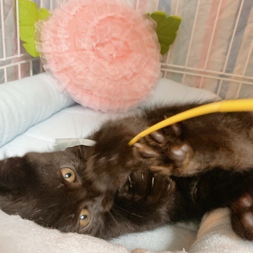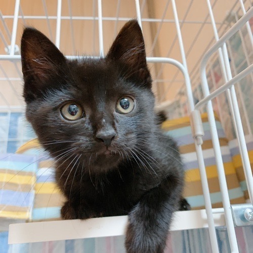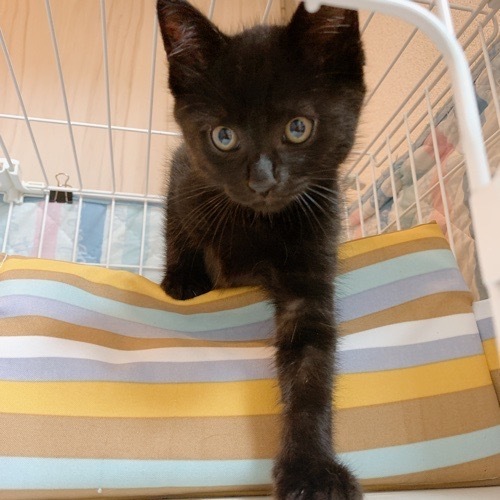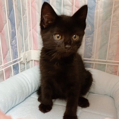 | 特徴(性格など) | 丸顔できょとんとしたお目々が可愛い男の子。 首元やお腹にうっすらと白毛が混じった黒猫くんです。 保護当初は一番のビビリでしたが、 どんどん好奇心旺盛な一面が見えてきました。 撫でるとお顔を手に押しつけてきたり、 ギザギザのしっぽをピーンと立てて近づいてきてくれます♪ おそらく3兄妹の中で一番の甘えんぼうさんになるんじゃないかと思っています?? 兄妹猫のウランちゃんとアトムくんとの 一緒のお迎えも大歓迎です! |