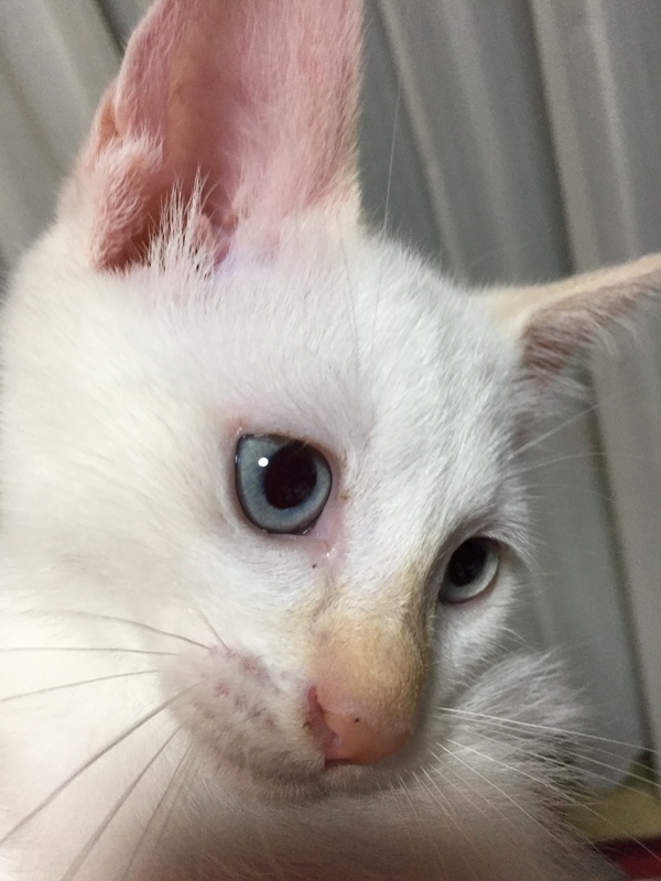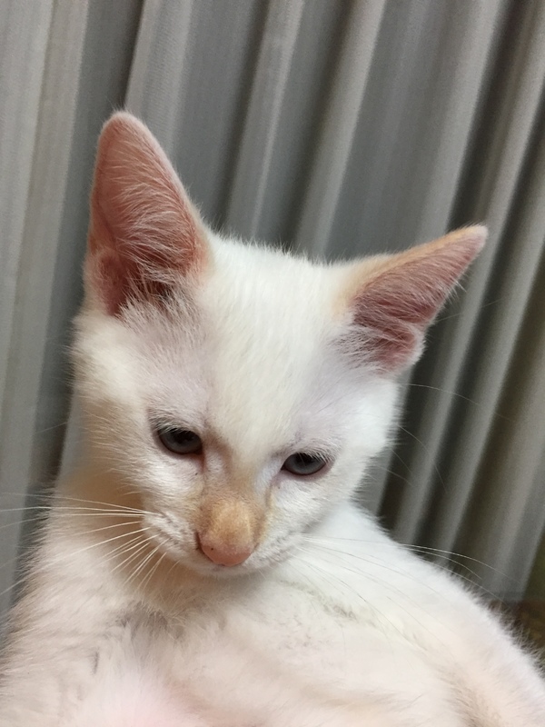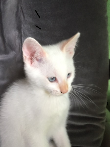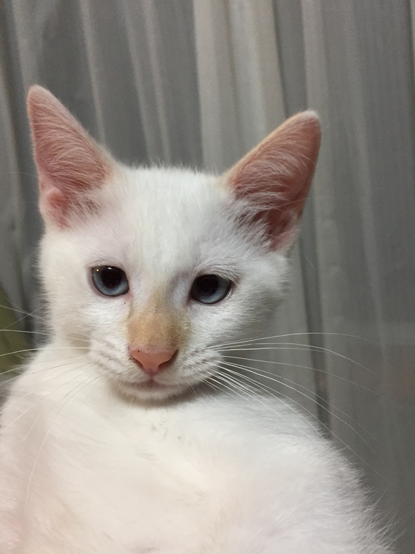 | 特徴(性格など) | 白猫の仔猫です。鼻としっぽが薄い茶色で、しっぽはうっすらトラ模様があります。 おもちゃで遊ぶのが大好きで、元気いっぱいです。 カリカリの餌を食べています。トイレもほぼ覚えました。 |