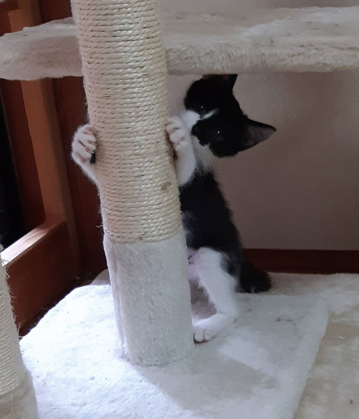 | 特徴(性格など) | ◆好奇心旺盛で元気な子猫です。 長いしっぽの先がかぎしっぽになっています。 初めての人には最初は慎重ですが、遊んでもらうのは大好きです。 同時募集のミルクちゃんと兄妹です。 仲良く遊び回っているので、二匹一緒に迎えて頂ける事を希望します。 |