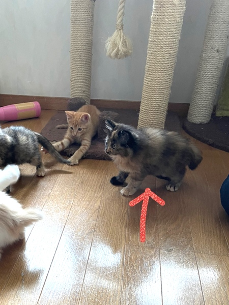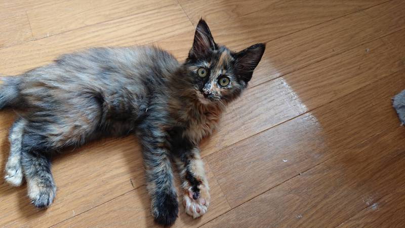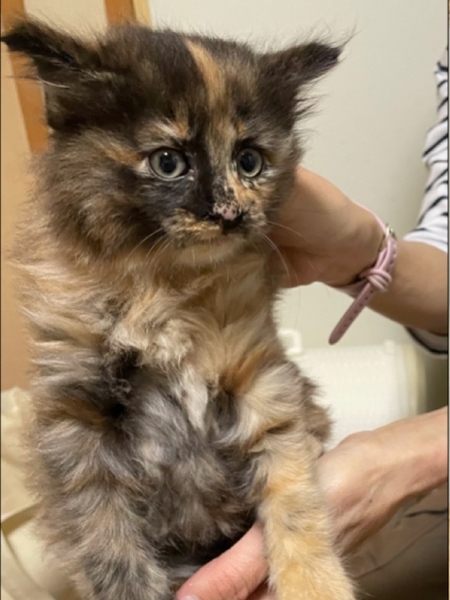 | 特徴(性格など) | ふわふわの長毛ちゃんのサビ猫で、しっぽは短いです。 とても人慣れしてて、遊んでもらうの大好き、一人遊びも大好き。 よく食べ、良く遊び、寝る時は今はケージで寝ています。 元気いっぱいです。 |