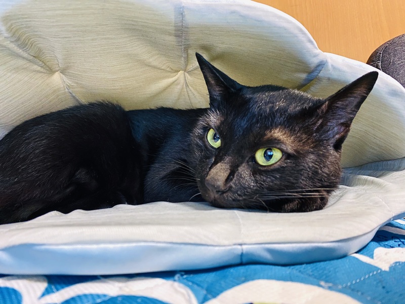 | 特徴(性格など) | 元は野良猫です 色は真っ黒で鍵しっぽになってます 甘えん坊で名前を呼ぶと返事をします 遊ぶことが好きでもっと遊んで欲しい時は自分からおもちゃを近くに置いてきます! |