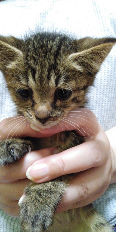 | 里親募集する理由 | 自宅の前の側溝に落ちて助けを求めていました。親猫、兄弟猫も見当たらず、保護し、養育しています。 | ||