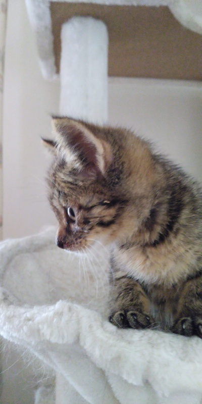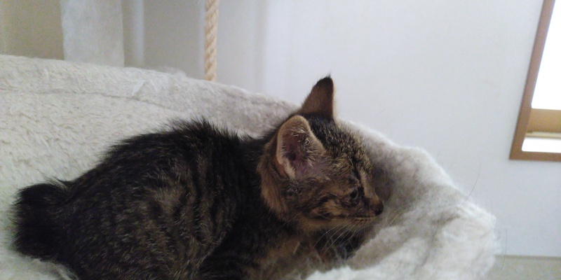 | 特徴(性格など) | 6月24日に保護しました。 キジトラの女の子です。 保護時はガリガリでしたが、だいぶふっくらしてきました。 物怖じしない性格。人にも他の猫にも好意的です。 かぎしっぽです。 |