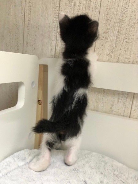 | 特徴(性格など) | 【仮名】もず 【生年月日】推定2021/5/12 【種類】MIX 【毛色】ブラック&ホワイト 【性別】オス 【去勢】未。適齢になり次第飼い主様でお願いします。 【ワクチン】生後2ヶ月を経過後接種予定 【駆虫】近日予定 【猫エイズ・猫白血病】子猫の為未検査 【健康状態】良好です 【性格・特徴】甘えん坊です♡マイペースでおっとりさん。おもちゃで遊ぶと興奮してたまにシッポを膨らませています。 【兄弟】ひい・しい ※1匹での応募も勿論可能ですが、兄弟での希望を優先する場合があります |