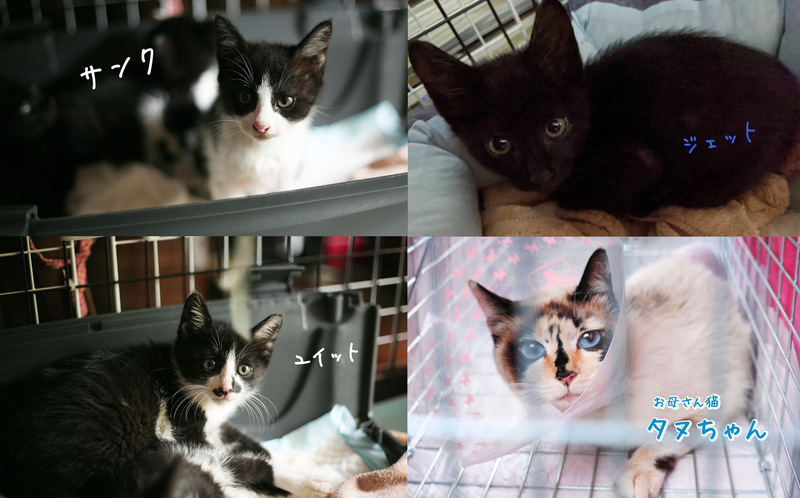 | 里親募集する理由 | 怪我をした美人なお母さん猫が隣のお家で4匹の赤ちゃんを産みました。お母さんの瞳は綺麗なブルー、変わった模様でとても美人さんです。怪我の治療のためお母さんを保護し、子猫も過酷な外に帰さず、ずっとのお家の中で穏やかに幸せに暮らしてほしいと思い、また保護主は喘息持ちのため、この子の一生の家族を募集します。 1匹での譲渡ももちろん大歓迎! 他の兄弟と一緒にお迎えも大歓迎です♪ お母さん猫も怪我が治れば健康体なため、 希望の方は治療がおわったあと譲渡可能です♪ かなり美猫さんです♪ お気軽にお問い合わせください^ ^ |