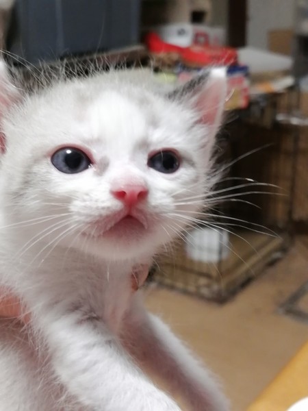 | 特徴(性格など) | 1匹は雄、白グレー、食欲旺盛、人懐こいです。 1匹は雌、白黒、元気で人懐こいです。 どちらもノミ駆除2回済み、検便済み、離乳が済んでドライフードを食べています。 動物病院受診済みです。 |