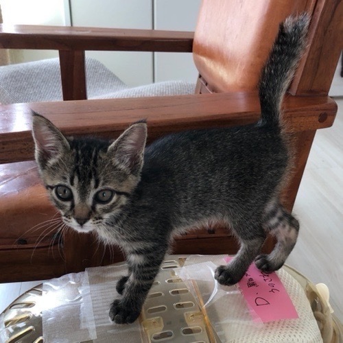 | 特徴(性格など) | 人間がミルクで育てた子なので、人には馴れ馴れです。 とにかく人間が大好きな子で、すぐに寄ってきます。 お膝やベッドで一緒に寝たがります(笑) 性格も明るくフレンドリー! 少し猫風邪をひいており、何日か病院で入院したのですが(現在は完治)先生や看護師さんからも「とーってもいい子!」とお褒めの言葉をいただいた程です。 尻尾の先がほうきのようで、チャーミング? 沢山遊んで、愛情をかけていただけ、 脱走対策、健康管理をしっかりして下さる里親様とご縁があると嬉しいです 健康状態★ノミ取り 済 |