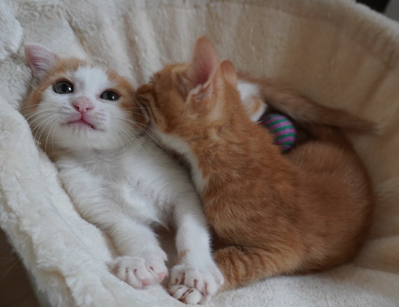 | 特徴(性格など) | 【仮名】はじめちゃん 【性格】タレ耳がチャームポイントのはじめちゃん♪ お母さんもタレ耳なので遺伝のようです(^-^; 柄も茶白に見えますが、お尻に黒い部分があるんです!三毛猫ちゃんです★ 人間がミルクで育てた期間が長い為、人間大好き! 超が付くほどの甘えん坊さんに成長しました☆ 後ろをついて回るので、後方に注意が必要です(笑) 最近はキャットタワーブームらしく、よく登っては飛び降り、 遊び疲れると、ハンモックでこたろう君とお昼寝(^^) 一緒に過ごしている兄妹のこたろう君とのお迎えをお願いします。 超甘えん坊兄弟なので、愛情をふたりじめ出来る環境でお留守番がない、 もしくは短い里親様に託したいと思います。 ※1匹譲渡不可 |