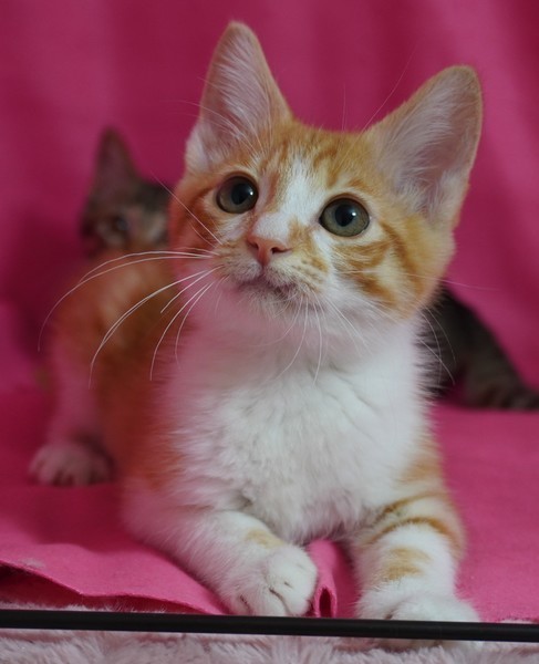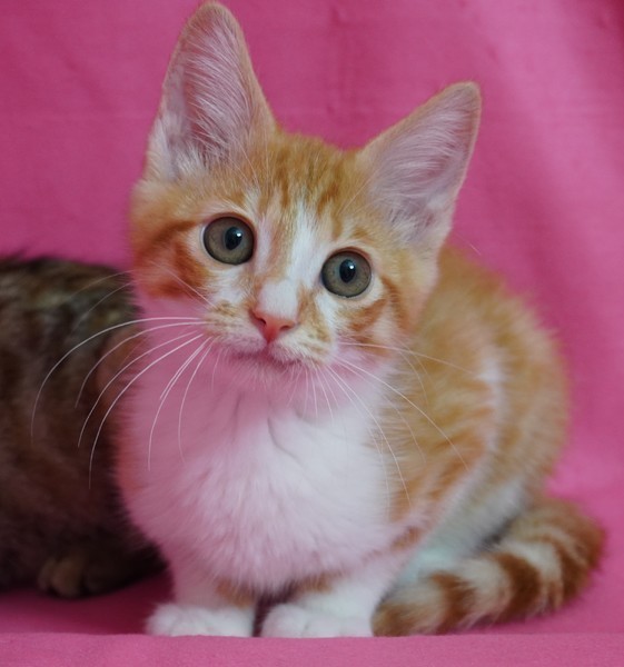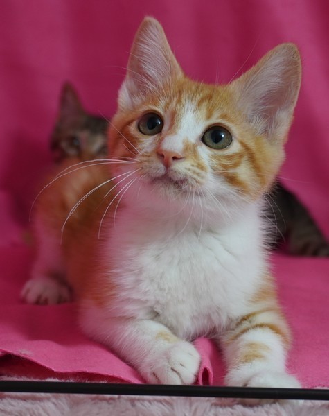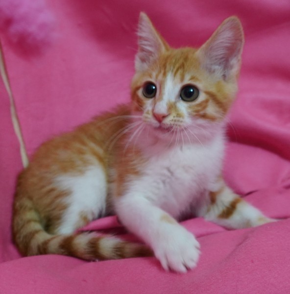 | 特徴(性格など) | 【仮名】ちょびちゃん 【性格】写真の通りキラキラ星なちょびちゃん♪ 保護して間もない為、まだまだビビッて、シャー言ったり、逃げ惑う仔です(>_<) 5匹兄弟の中でも、一番の怖がり屋さんです(-_-;) 遊ぶのは大好きで、ごはんやおやつもいっぱい食べる仔なので、 いっぱい遊んで、おやつをあげて、 一緒に暮らしていく中で人馴れしていくことでしょう♪ 里親様の愛情で、ナデナデや抱っこが出来る仔にして頂けると嬉しいです(>_<) 初めて猫ちゃんをお迎えする方よりも、経験ある里親様の方が良いかもです(^-^; 譲渡会までには、もう一歩、成長した姿をお見せします(笑) ちょびちゃんのペースで慣れるのを待って下さる里親様に託したいと思います☆ 姉妹のリッチちゃんかハイジちゃんかクララちゃんか ぴっぴちゃんとのペアでのお迎えを希望します♪ ※1匹譲渡不可 |