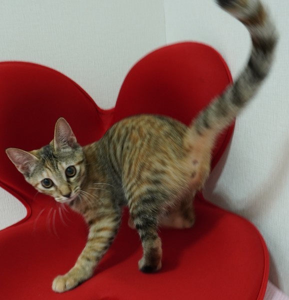 | 特徴(性格など) | 【仮名】クララちゃん 【性格】麦わら柄が可愛いクララちゃん♪ 見た目通りの手脚の長さを活かし、、 おもちゃとごはんを狙うスピードは姉妹一番です(笑) 最初は逃げ惑う仔ですが、一緒に暮らす中で少しずつ慣れてくるタイプです。 猫じゃらしで遊ぶ時は、お世話の者のお膝にも乗ってくれます☆多分、夢中で気づいてないだけ(笑) 食いしん坊で、陽気な雰囲気をかもしているので、いっぱい遊んで、おやつをあげて、 一緒に暮らしていく中で人馴れしていくことでしょう♪ 里親様の愛情で、ナデナデや抱っこが出来る仔にして頂けると嬉しいです(>_<) 譲渡会までには、もう一歩、成長した姿をお見せします(笑) クララちゃんのペースで慣れるのを待って下さる里親様に託したいと思います☆ ※環境によっては1匹譲渡も視野には入れておりましたが、ここ数日様子をみていると、 姉妹のリッチちゃんと一緒に過ごした方が、穏やかに、楽しく過ごせるようです。 なので、リッチちゃんとお迎え頂だけると嬉しいです。 |