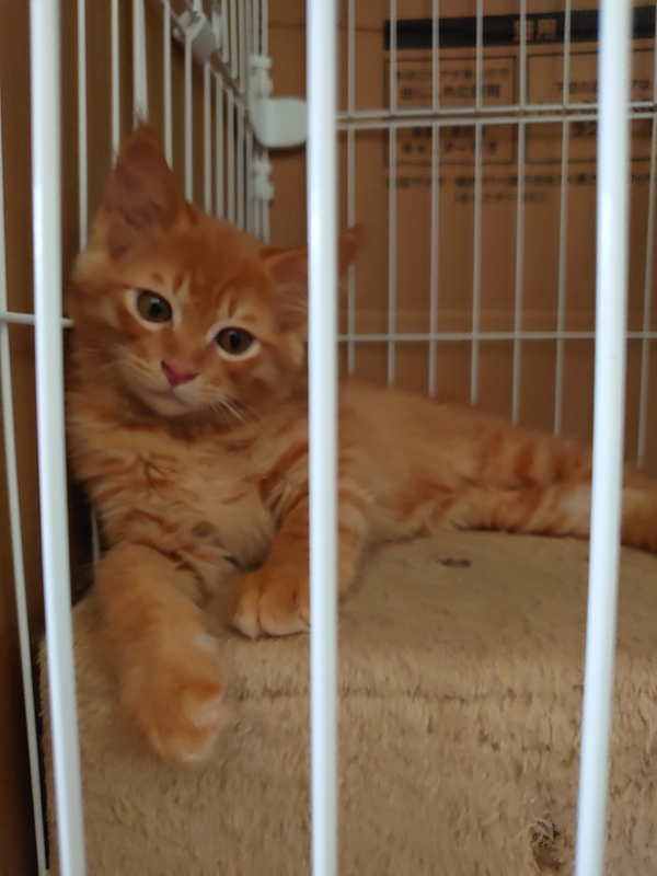 | 里親募集する理由 | 倉庫に居たところを保護しました。 人馴れ訓練中です。 |