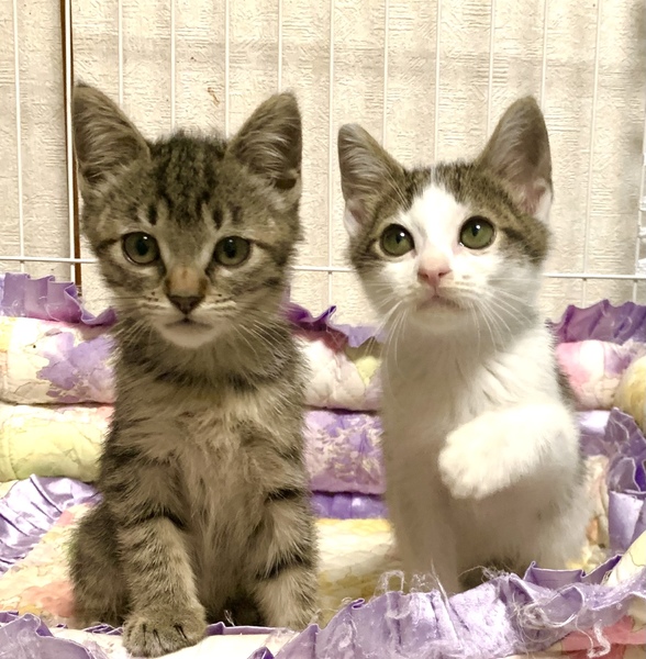 | 特徴(性格など) | 猫の特徴など キジトラ 雌 とても人慣れしています。良く戯れ遊べる 子猫です。尻尾も長いです。 シロキジ 雄 ご飯を食べててもゴロゴロ大音!おっとり優しい男子です。 この子猫も尻尾が長いです。 二匹共お目々は真丸! 健康状態 良好です。 保護当時猫風邪をひいてましたが、投薬で よくなりました。 レボリューション済み 駆虫済み フード、トイレは問題ありません。 子猫の為子猫だけのお留守番が少ない方を希望致します。 |