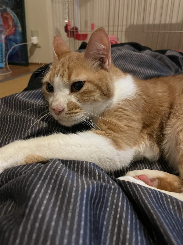 | 特徴(性格など) | ・はちわれ茶トラ ・キレイなグリーンの瞳 ・足先は白 ・お腹も白くてふわふわ ・血統書なし ・多頭飼いの家庭から、生後2ヶ月の頃に引き取りました。 ・誕生月は分かりますが、誕生日は不明です。 ・清潔な環境とお手入れを欠かさず行っております。 トイレのしつけは出来ており、年齢のせいもありますが、基本穏やかで甘えん坊です。 人見知りは一切せず、接客猫ちゃんです。 きちんと餌と爪研ぎを与えていれば、悪戯もありません。 一時的に引き取る為に、2021年7月2日に新たに購入した2段ゲージとおトイレがありますので、お迎えして直ぐに飼育環境が整います。 譲渡時に餌や猫砂等余っている物も全てお譲り致します。 手は掛かりませんが、やはり他の猫ちゃん同様にゲージ入れっぱなしは嫌がります。 |