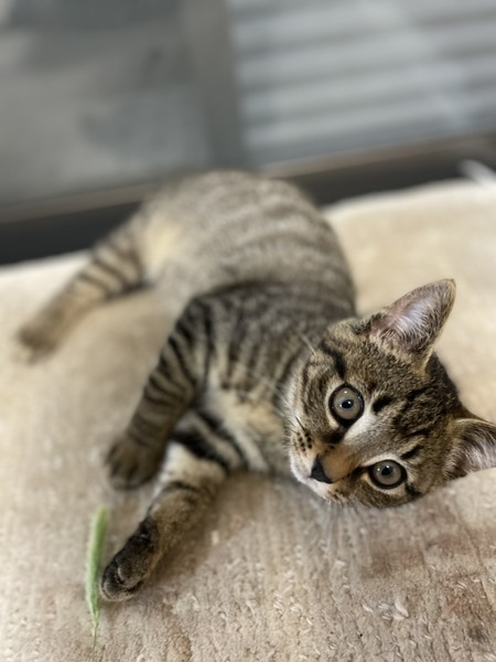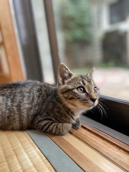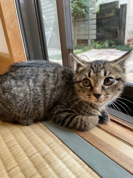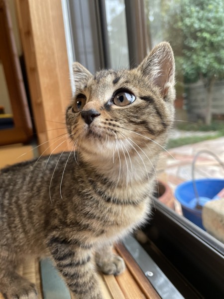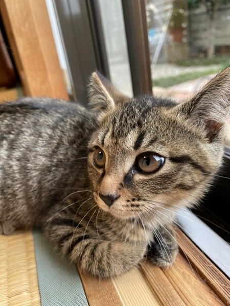 | 特徴(性格など) | キジトラの女の子です。 小さな子供にだっこされても嫌がらずおとなしくしており人慣れしている感じです。 遊ぶときは、とても活発でよく遊びます。 エサもよく食べます。 一度、ノミ対策の薬を首後ろにしました。 保護したあと、トイレを教えてたら、その後、その場所でちゃんとトイレできています。 数匹猫を飼った経験がありますが、頭がよさそうな感じがする子猫ちゃんです。 |