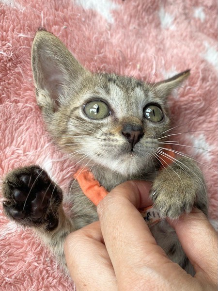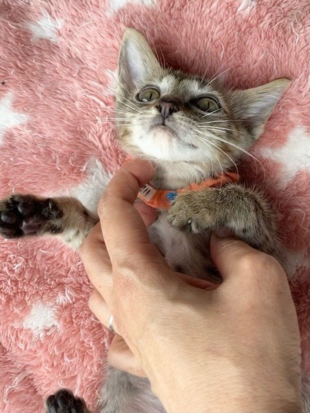 | 特徴(性格など) | ちょっぴり天然「ユウバリ」ちゃん❤ 玩具で遊んで貰うの大好き♪な甘えっコ 現在、ドライフードを24時間の置き餌として栄養補給、水分補給のため一日4回パウチを与えています。 <推定誕生日:5月始め> |