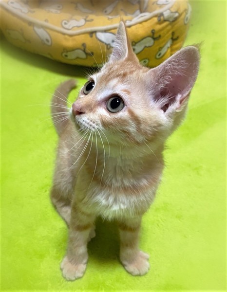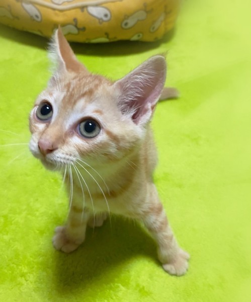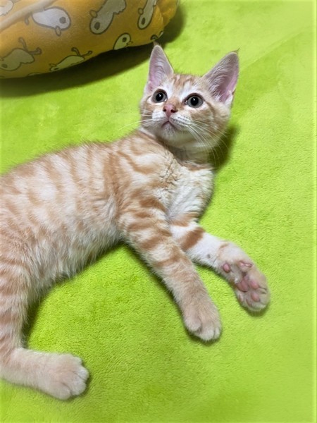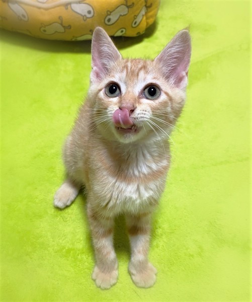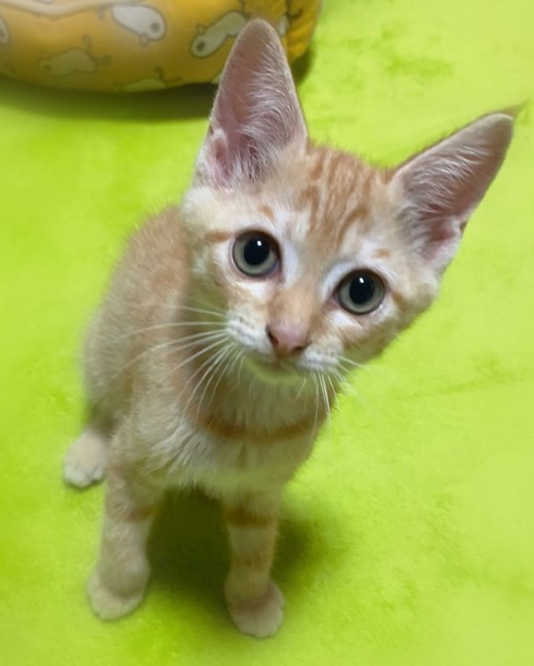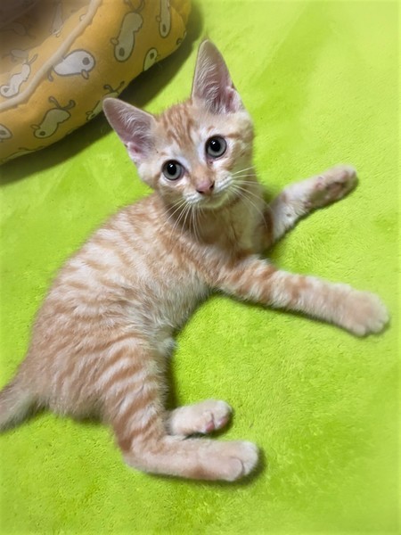 | 特徴(性格など) | 淡く明るい色・茶トラの女の子 とても甘えん坊な性格で、撫でるとゴロゴロ抱っこでもゴロゴロ 膝の上に乗ってふみふみ~ 人が大好きです。 |