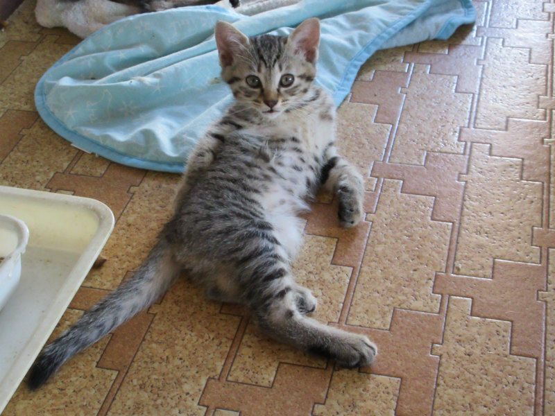 | 特徴(性格など) | グレーがかったキジトラ猫 性格はおてんば 人懐こい 獣医さんによる健康診断で良好とのこと ブロードラインというのみ,ダニ,お腹の虫に効くお薬を滴下しました |