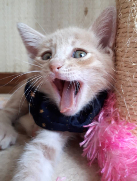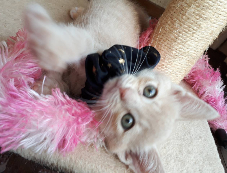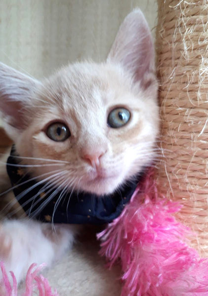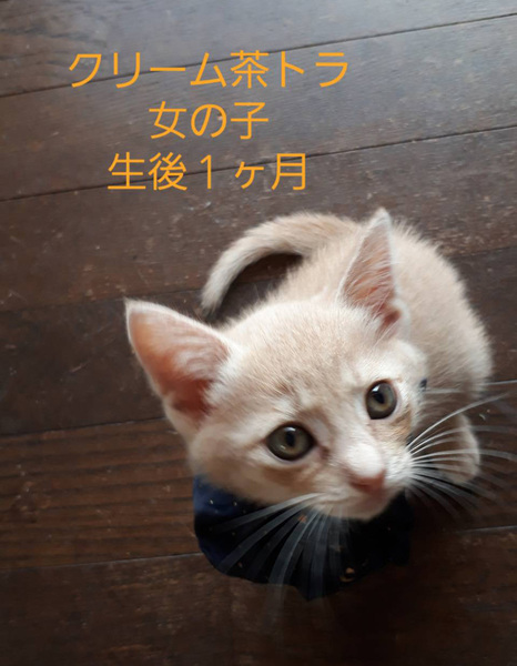 | 特徴(性格など) | クリーム色の茶トラです、マイペースな子で回りには振り回されず自分のペースで遊んでます。 人は好きで甘えん坊さんです。 ワクチン近々接種予定です。 駆虫済み エイズ白血病検査はお母さん猫でしてます。共に陰性でした。 |