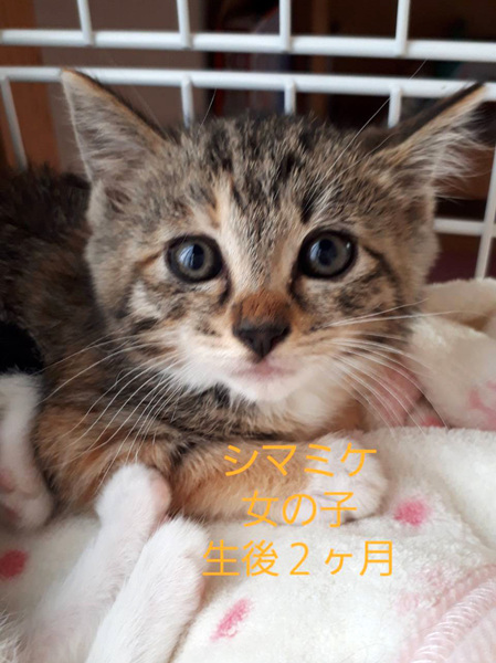 | 特徴(性格など) | 変わったシマミケの柄です、しっぽの先は豆電球が点いてる様でとても可愛いですよ。 ワクチン接種予定 レボリューション済み 駆虫済み エイズ白血病検査は現場の大人猫♀️手術時に検査してますが、今の所皆陰性です。 |