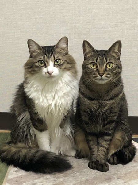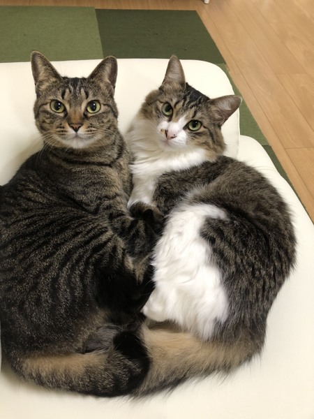 | 特徴(性格など) | キジトラ、キジ白 最初は少し人見知りしますが、すぐ慣れて2匹とも甘えてきます。威嚇したら噛んだりすることはありません。 |
