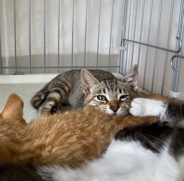 | 特徴(性格など) | ☆仮名 きーたん ☆性別 オス ☆年齢 推定生後2ヶ月(2021年5月初旬ごろ生まれ) ☆体重 800g(2021年7月1日時点) ☆毛色 キジトラ ☆初回3種ワクチン接種済み ☆ウイルス検査済み(エイズ白血病どちらも陰性) ☆レボリューション済み(ノミ、マダニ、回虫) ☆猫風邪による結膜炎治療中(目薬、抗生剤) 人気のキジトラちゃんです! トラ模様がとっても綺麗な『きーたん』 保護直後はシャーシャーするわ、空砲連発するわの困ったクンでした。 まだ少し人は苦手ですが、ちゅーるで落ちます(笑) 心を許した人にはベタベタの甘えん坊になる事でしょう。 猫風邪による角膜炎が左目に出ています。 炎症止めとして抗生剤の注射をしてあり、目薬も使っています。 じきにパッチリお目になりますが、もしかしたら若干の白濁が残るかもしれません。 その場合も視力に問題ありません。 ヘルペスウイルスに効くサプリをドライフードに振りかけて与えています。 同腹のキョウダイ同士4匹で仲良しです。 どの組み合わせでも、2匹一緒の素敵なご縁をお待ちしています。 ★子猫ですので、お留守番の長いおうちには譲渡できません。 ★生後6ヶ月までに必ず去勢手術をお願いします。 術後の領収書を写メ等で確認させて下さい。 ★ご応募の際は、別記その他をよくお読みになりご検討をお願いいたします。 保護猫の様子は随時動画をアップしています 是非ご覧になってご検討下さい https://m.youtube.com/c/komugi710/videos 2009年からブログで保護猫やうちの猫のことを不定期に綴っています。(現在更新お休み中) https://plaza.rakuten.co.jp/alohaplumeria/ |