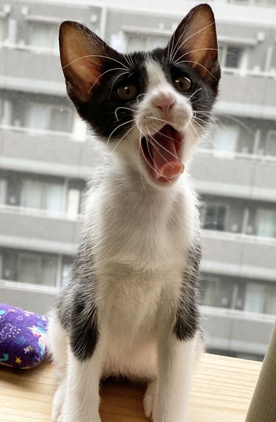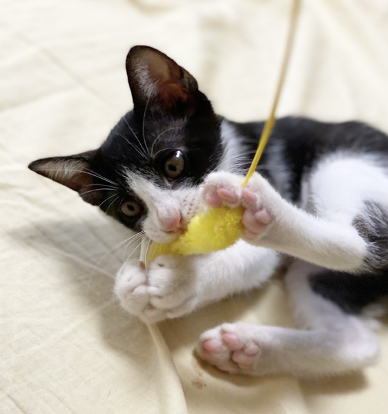 | 特徴(性格など) | 3兄妹で生まれ、推定3日後に愛護センターに持ち込まれて、そのまま授乳専門のボランティアさんのもとで離乳するまで育てられました。 まだ目が開かないうちにボランティアさんから授乳をしてもらっているので、人間がお母さん同然のため、とても人懐っこいです。 めちゃめちゃ甘えん坊で、夜はぺったりくっついて、一緒に寝るのが日課になっています。 おもちゃで遊ぶのも大好き!ご飯を食べるのも大好き!そして、「もっと遊んで!」「おなかすいたよー!」と、自分の欲求は我慢せずにちゃんと鳴いてお知らせしてくれる素直な男の子です。 ずっと兄妹やお友達と一緒に過ごしてきました。とても甘えん坊な性格なので、お留守番がなるべく短いお家や、一緒に遊べる猫さんと一緒の多頭飼育が可能なお家の方からのご応募があれば有り難いです。 |