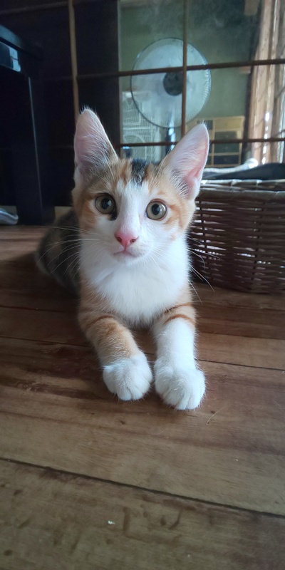 | 特徴(性格など) | 可愛い可愛い三毛さんです。とてもお転婆で甘えん坊さんです。遊んで遊んでパタンッッと寝ます。8月6日現在、生後2.5ヶ月 体重1.1キロです。 | ||