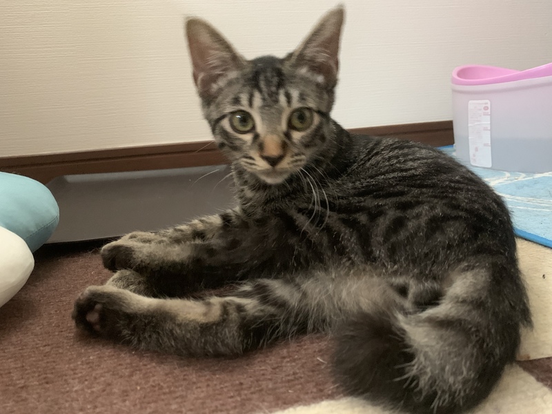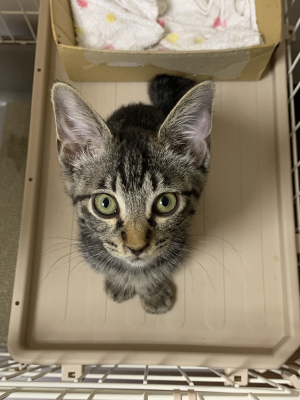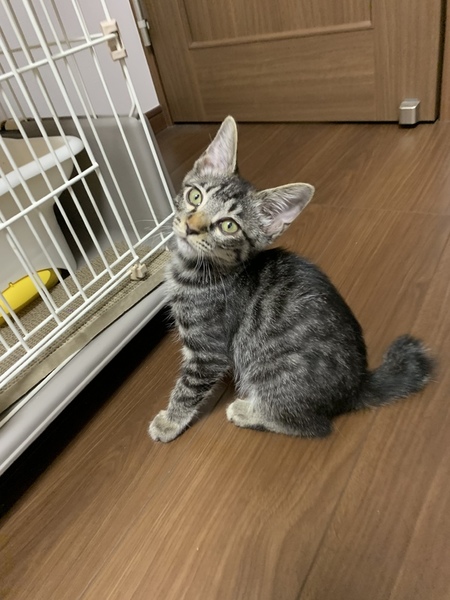 | 特徴(性格など) | 鍵しっぽがかわいいキジトラ♂ とても人懐っこい子猫です 猫エイズ、猫白血病共に陰性 |
