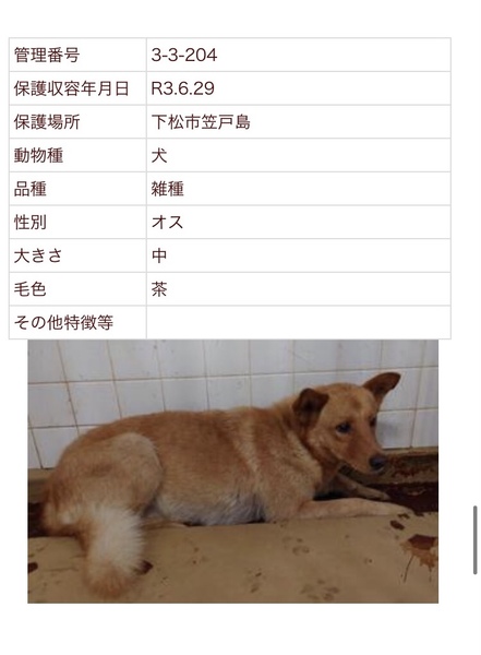 | その他(譲渡条件など) | 野犬ですので脱走対策(柵やゲート)を万全にしていただきます 人馴れするまで時間もかかります 留守番時間が5時間以上ある方はお断りさせていただきます 家族全員の同意のうえご連絡ください |
