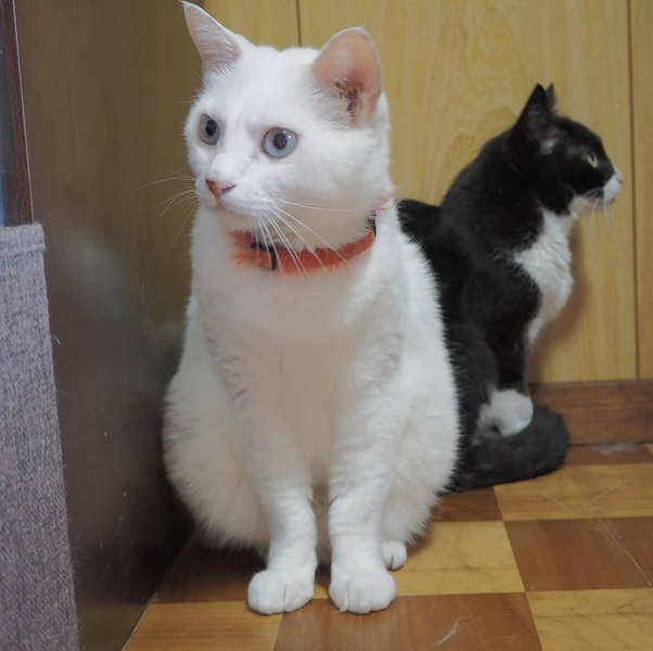 | 特徴(性格など) | 年齢は、推定4〜5歳です。 三毛猫(女の子) 白黒ハチワレ(女の子) ※猫エイズです。発症はしていません。 ぶち模様(男の子) 真っ白(男の子) |