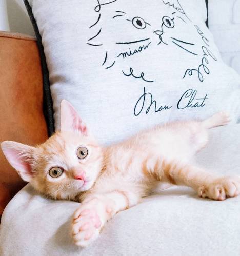 | 特徴(性格など) | 【仮名】チャイくん 【性格】活発でヤンチャなチャイくん♪ 最初は大人にゃんこと同じように高い所に行きたがって 「ボクも乗せて〜っ!」と ニャーニャー鳴いてましたが 今では階段も余裕になり楽しんで遊んでます♪ がしかし!たまに… 落ちます…(笑) 自由に思い切り遊んだ後は ゴハンちょうだい!と催促♪ パウチを見せると飛び跳ねたり脚から肩まで上って来ます。 小さいながら自己主張がはっきりしていて面白いコです♪ 愛嬌たっぷり 抱っこ 膝乗りも大好きですよ〜 兄妹か同世代のにゃんことのペアでのお迎えを希望します♪ ※1匹譲渡不可 |