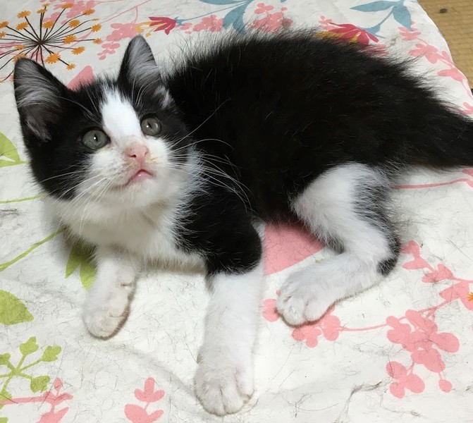 | 特徴(性格など) | ちょっと長めの毛がほわほわの白黒 男の子です。 性格は甘えん坊で、いつもあとをついてきます。 抱き上げると、最初出会った頃と変わらず、常にゴロゴロと喉をならしてくれます。 とっても性格が良い子なので初心者さんにも飼いやすいと思います。 |