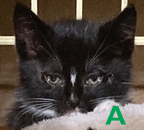 | 特徴(性格など) | 黒白です。 ほとんど黒で額に白い縦線。足先のみ白くて手袋をはめてる感じでかわいいです。 姉妹の中で一番甘えんぼです。 |