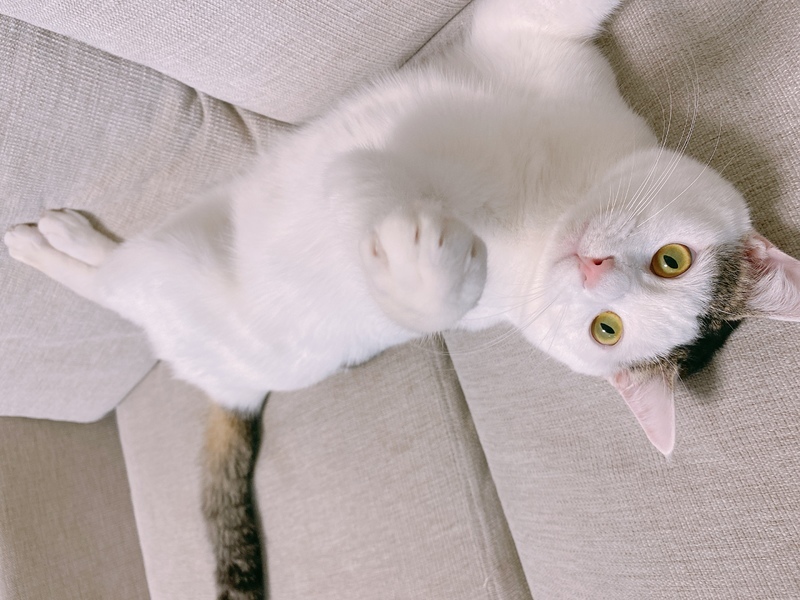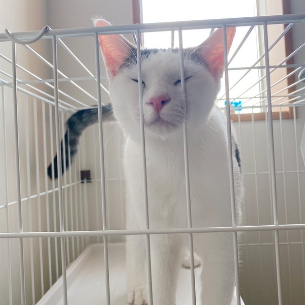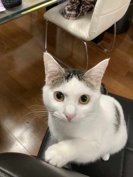 | 特徴(性格など) | 【色柄】 全体白色で 肉球、お鼻はピンクです。 背中に黒の丸い点模様が4つあります。 【性格】 甘えたで撫でたら 「ゴロゴロ〜」音を鳴らして 反応してくれます! ご飯が大好きで食欲旺盛な 元気な男の子です。 |