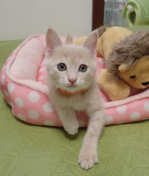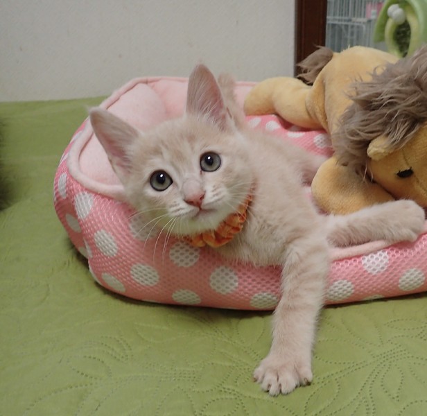 | 特徴(性格など) | ★★★東京・東銀座★猫の譲渡会★駅チカ2分東劇隣り★★★ 子猫ちゃん〜成猫ちゃんまで参加します ※掲載の猫ちゃんとのお見合いは譲渡会場になります。 事前のご予約は必要ございませんので当日会場へお越しくださいませ。 ◇会場のご案内・開催日時等、詳しくは下記をご覧ください。 猫の未来とびらホームページ http://nekonomiraitobira.com/ ★☆★「猫の未来とびら」譲渡会参加予定の猫ちゃんになります★☆★ ◇仮名◇チッチくん ◇毛色◇クリーム ◇性別◇オス ◇性格◇ シュシュちゃん、ナナちゃんとの3匹兄妹です。 3匹とも綺麗な色合いの子達で、そして大変に甘えん坊です。ただ3匹揃ってエイズ陽性が出てしまいました。お母さん猫の抗体をもらって出ているので抗体が消えた時に陰転する可能性はありますが、判りません。現在の条件で兄妹で、或いは1匹で飼って下さるご縁をお待ちしております。 譲渡会に参加予定の猫ちゃん一覧 http://nekonomiraitobira.com/archives/category/next |