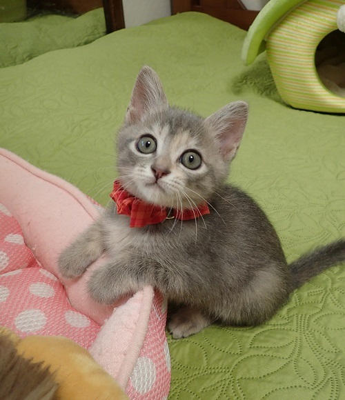 | 特徴(性格など) | ★★★東京・東銀座★猫の譲渡会★駅チカ2分東劇隣り★★★ 子猫ちゃん〜成猫ちゃんまで参加します ※掲載の猫ちゃんとのお見合いは譲渡会場になります。 事前のご予約は必要ございませんので当日会場へお越しくださいませ。 ◇会場のご案内・開催日時等、詳しくは下記をご覧ください。 猫の未来とびらホームページ http://nekonomiraitobira.com/ ★☆★「猫の未来とびら」譲渡会参加予定の猫ちゃんになります★☆★ ◇仮名◇ナナちゃん ◇毛色◇グレー ◇性別◇メス ◇性格◇ チッチくん、シュシュちゃんとの3匹兄妹です。3匹とも綺麗な色合いの子達で、そして大変に甘えん坊です。ただ3匹揃ってエイズ陽性が出てしまいました。お母さん猫の抗体をもらって出ているので抗体が消えた時に陰転する可能性はありますが、判りません。現在の条件で兄妹で、或いは1匹で飼って下さるご縁をお待ちしております。 譲渡会に参加予定の猫ちゃん一覧 http://nekonomiraitobira.com/archives/category/next |