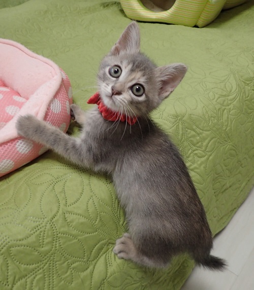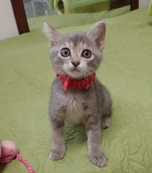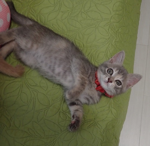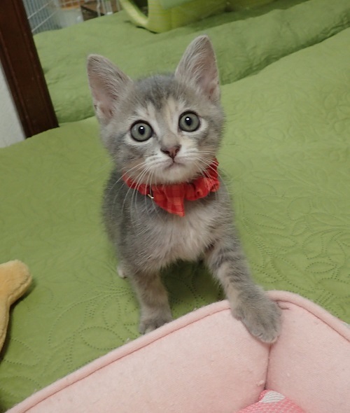 | 里親募集する理由 | 同じマンションの人が帰省した時に、実家に来るようになった猫が子猫を産んで育てていたそうで、保護しました。産んでしまったお母さん猫は、その後避妊手術をしてもらいました。 | ||