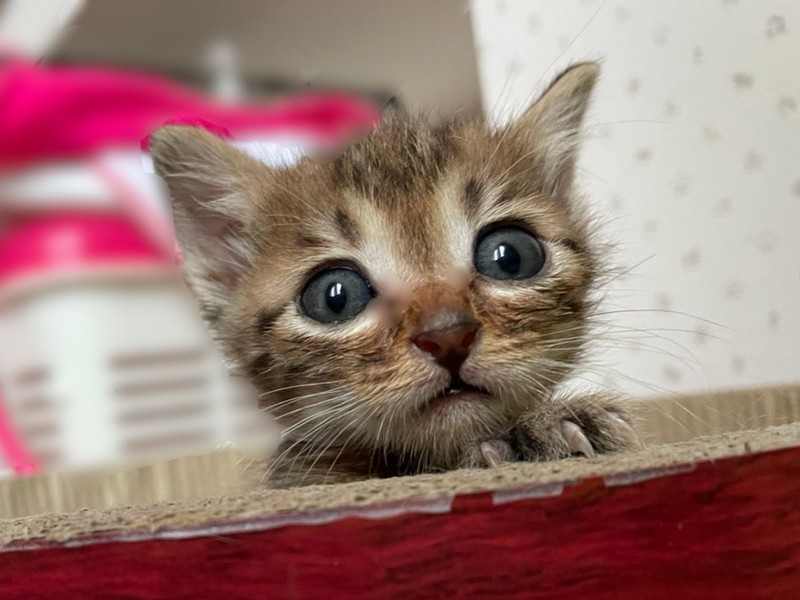| 特徴(性格など) | 【仮名】すわ 【生年月日】推定2021年6月上旬 【種類】MIX 【毛色】ブラウンタビー 【性別】メス 【避妊】適齢になり次第飼い主様でお願いします 【ワクチン】生後2か月頃接種 (接種後の譲渡) 【駆虫】未 【健康状態】良好 ほかの兄弟より一回り小さいですが現在は元気です。 【性格】元気いっぱい、膝乗り猫ちゃん。最近やっと小さな体で兄妹とじゃれ合うようになったけど負けちゃったーと膝に戻ってくる人が大好きな子。兄弟と遊ぶより人と遊ぶのが好きな子です(*^_^*) 【兄弟】ぺけ♀ ジェイ♂ 【その他】予約募集です。ほかの兄弟よりも一回り小さいので、混合ワクチン接種は生後2か月頃を予定していますが体重など安定してからになるため多少遅くなる可能性もあります。ワクチン接種前の譲渡はしません。 |