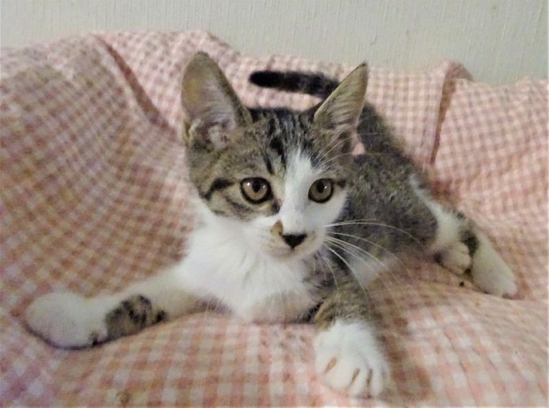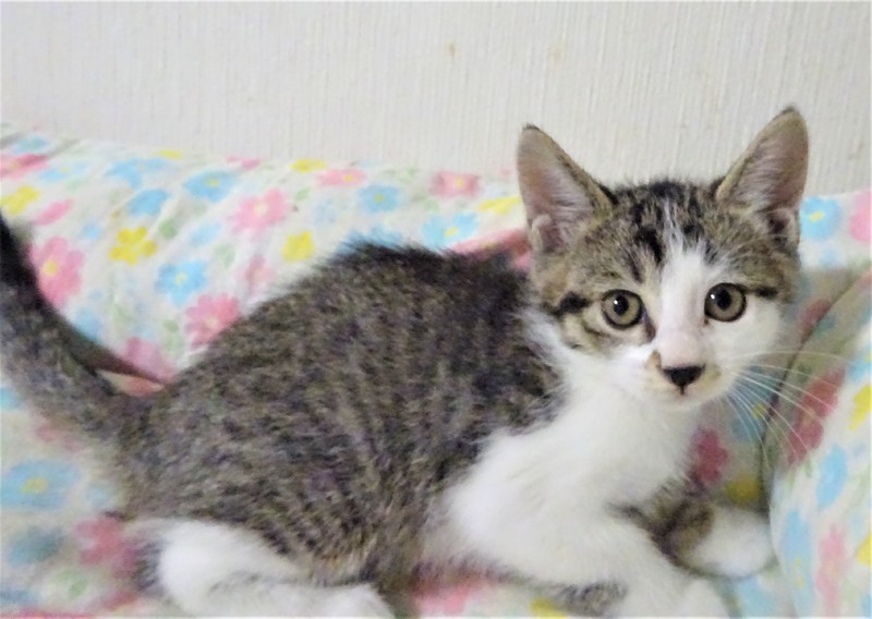 | 特徴(性格など) | 仮名: 砂子(サコ)ちゃん(メス) 毛色: キジ白、尻尾長い 性格: 大人しく少し怖がりですが、威嚇せずに抱っこ出来ます。大きな音やカメラを向けると怖いようです。 3姉妹は大人しいのでにゃんプロも今の所は控えめです。 もう少ししたら活発になってくると思います。 姉妹の亜子ちゃん、真子ちゃんのどちらかと一緒のお家が希望ですが、模様が似ていて区別しづらいので別々でも構いません。 暫くは留守番時間は短めのお家が良いと思います。 ノミ取り済 検便済 駆虫済 3種混合ワクチン済 猫エイズ・白血病ウィルス検査はともに陰性です |