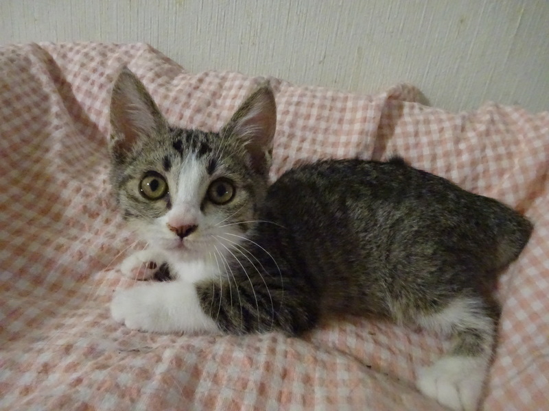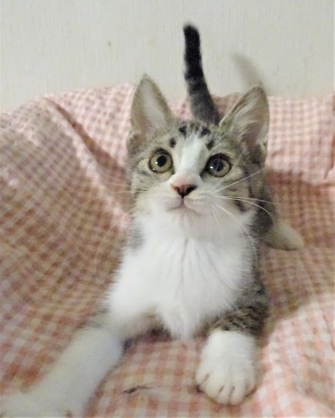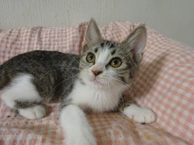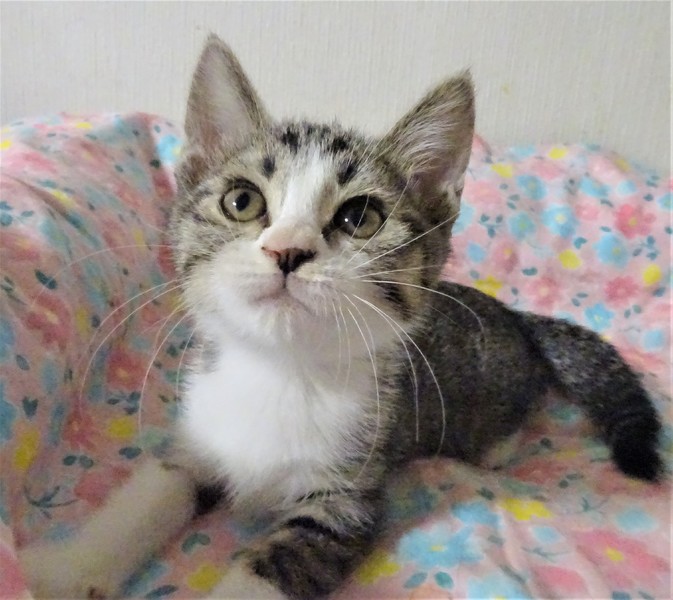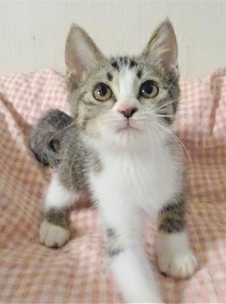 | 特徴(性格など) | 仮名: 真子ちゃん(メス) 毛色: キジ白、尻尾長い 性格: 人には馴れているので威嚇なく抱っこ出来ますが、少しビビリなのでいきなりの大きな音とか、大きなものを持って近づくとか、そういう事に驚いてしまいます。 大きな形のじゃらしも少し怖いようですが、遊びます。 3姉妹は大人しいので遊びも控えめで、大人しいにゃんプロをしています。 姉妹の砂子ちゃん、亜子ちゃんのどちらかと一緒のお家が希望ですが、模様が良く似ていて区別がつきづらいので、別々でも構いません。 暫くは留守番時間は短めのお家が良いと思います。 ノミ取り済 検便済 駆虫済 3種混合ワクチン済 猫エイズ・白血病ウィルス検査はともに陰性 |