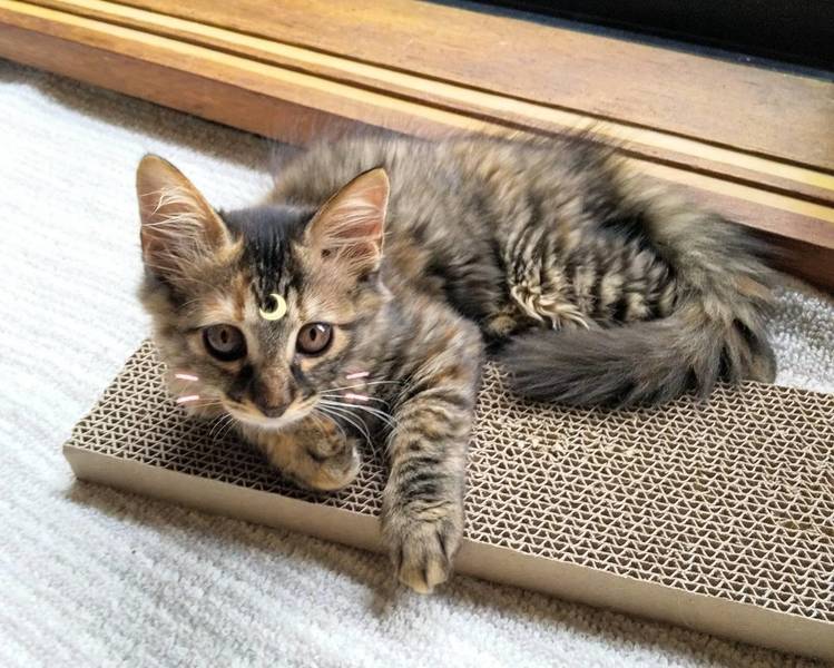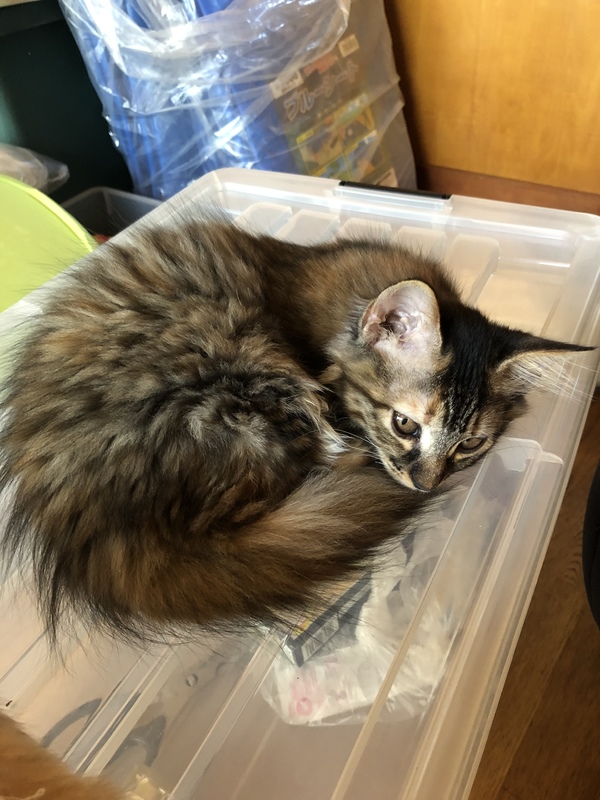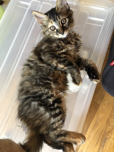 | 特徴(性格など) | サビ長毛 マイペース 甘え方は控え目 膝に乗ったり抱っこは今のところ苦手そうです。猫じゃらしなど遊びは大好きです 体力は一番多い 長毛なので肛門周りのカットが必要。 | ||