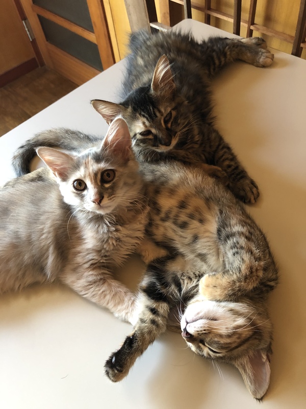 | 特徴(性格など) | クリーム灰長毛 性格は元気で人懐こい 好奇心旺盛 姉妹猫とじゃれて元気いっぱい遊んでいます 長毛なので肛門周りのカットが必要。 | ||