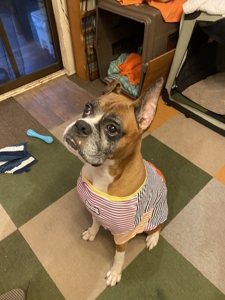 | 特徴(性格など) | 体重27.5キロ 性格は明るく好奇心旺盛です。 とても人懐っこい子です。 ほかのワンちゃんも大好きです。 無駄吠えもありませんし、お留守番もいたずらすることなくお利口にできています。 お座りも上手に出来るようになりました。 現在は、伏せの練習中です。 散歩はリ-ドを引っ張らず歩けます。 |