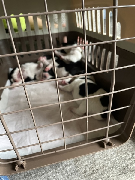 | 特徴(性格など) | ボーダーコリーとビーグルのミックス犬になります。 黒がメインで白色もある子と顔に茶色がある子の2匹です。 性格などは分かりませんが元気いっぱいに鳴いたりしています。 |