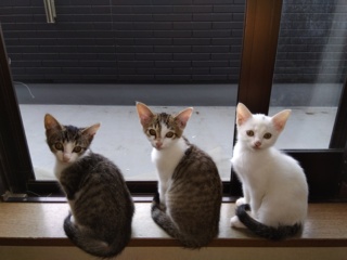 特徴(性格など) | 4/13産まれ 茶トラのオス1 白地に茶トラ模様少しのオス2 玄関前に箱に入れて放置されてました。6月後半?産まれ 性別不明 茶トラ1 キジトラ2 サビ1 |