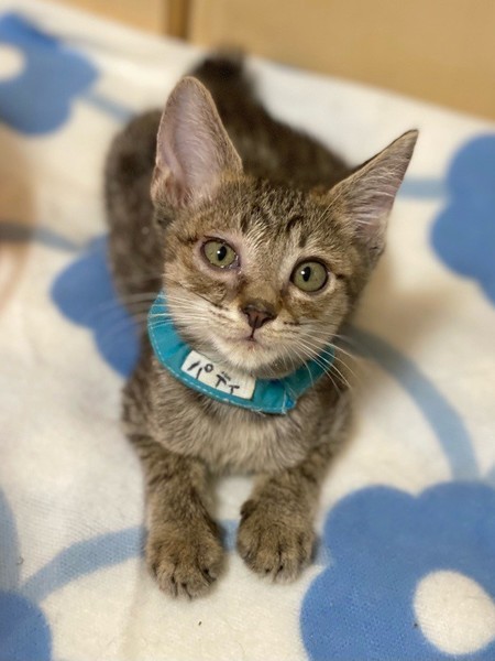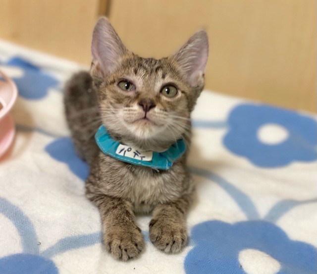 | 特徴(性格など) | のんびり屋「パティ」くん❤ ボクひとりでゆっくりミルク飲みたいのぉ♪ご飯食べたいのっ♪なまったり♪マイペースくん❤ 現在、ドライフードを24時間の置き餌として栄養補給、水分補給のため一日4回パウチを与えています。 <推定誕生日:4月下旬> |