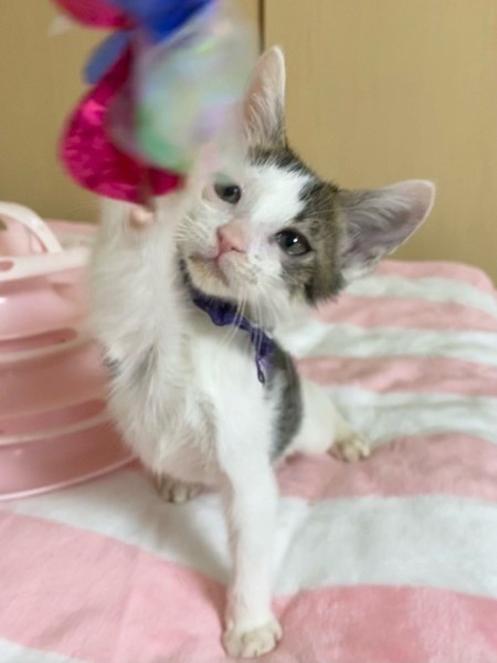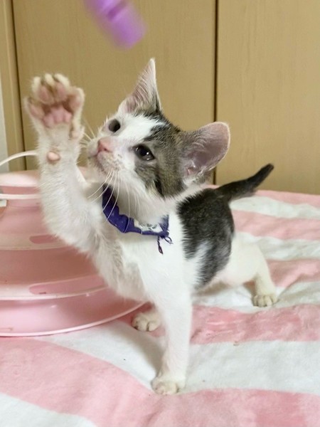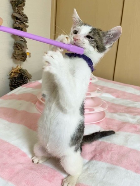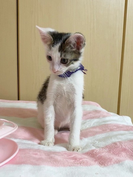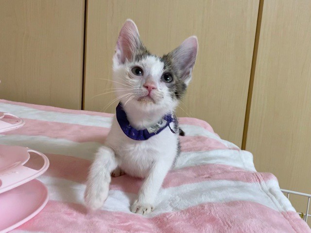 | 特徴(性格など) | めちゃくちゃ甘えん坊な「ジミー」くん❤ 抱っこ大好き♪ボク一番♪マイペースなお坊ちゃま 現在、ドライフードを24時間の置き餌として栄養補給、水分補給のため一日4回パウチを与えています。 <推定誕生日:4月下旬> |
